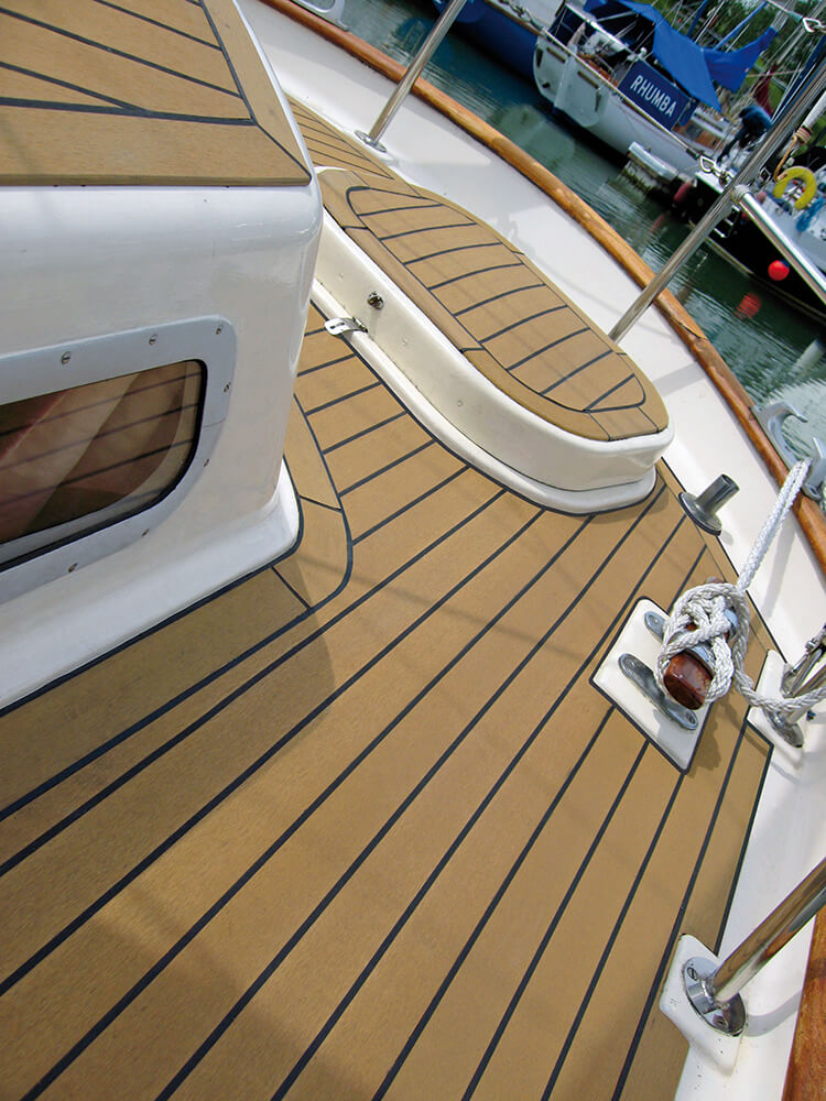 Improving the aesthetics of an old deck can hugely improve the overall appearance of a boat, whether this is a traditional teak finish or a more modern synthetic product. We manufacture fully welded simulated teak decks and panels. The panels can be made to patterns supplied by customers for DIY install or we can carry out a full fitting service. Get in touch to find out about the wide range of options available.